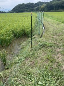 田植え後の田んぼを守るため、獣害対策用の柵立てを行いました。