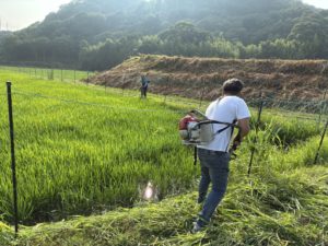 夏に向けて雑草が一気に成長するため、畦や周囲の草刈りを実施しました。